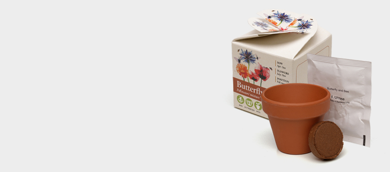 Charming pre-printed carton with a flower-style closure…