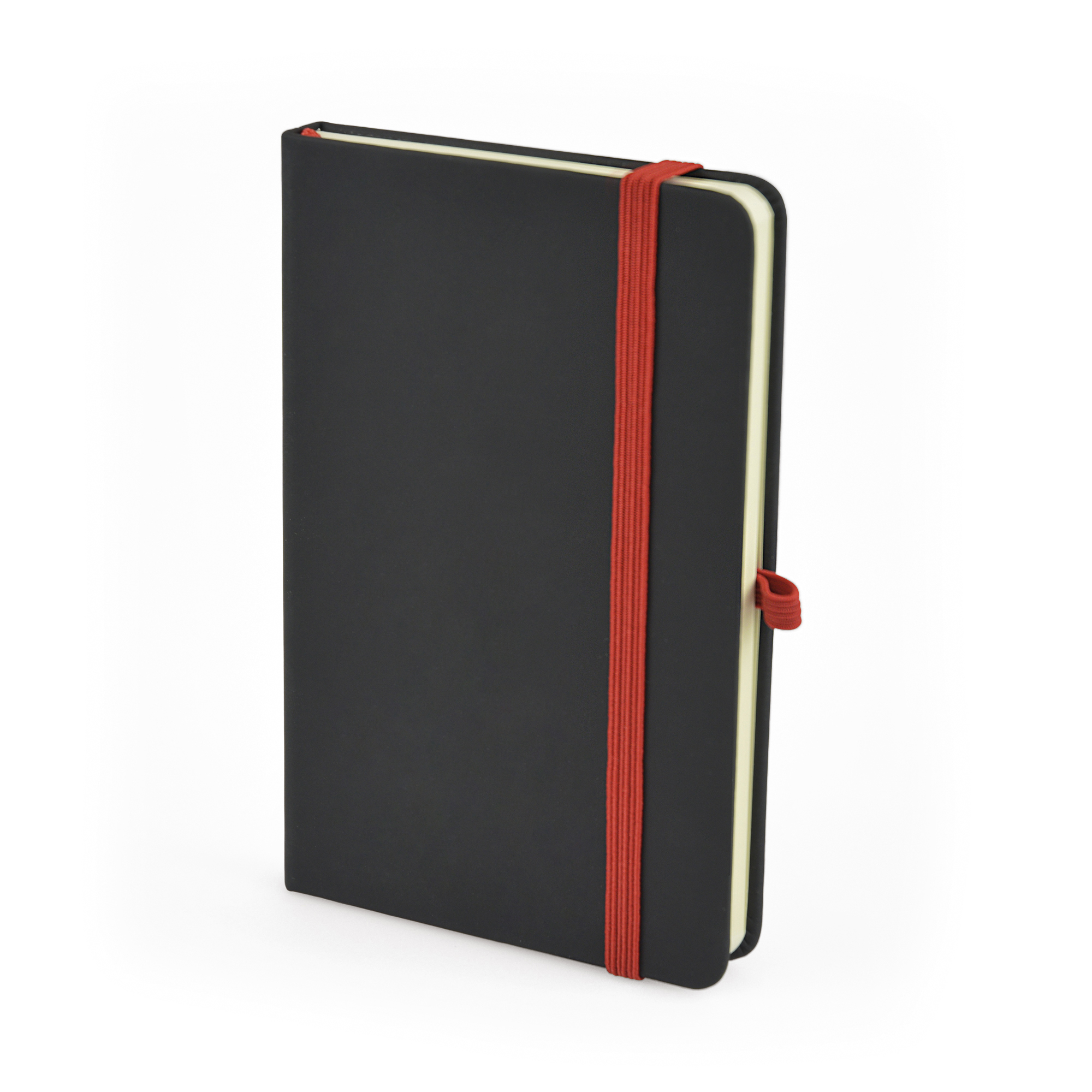 | QS0766RD | 'A6 Black Mole Notebook' with RED 186c bookmark, pen loop, closure. | 4052 |