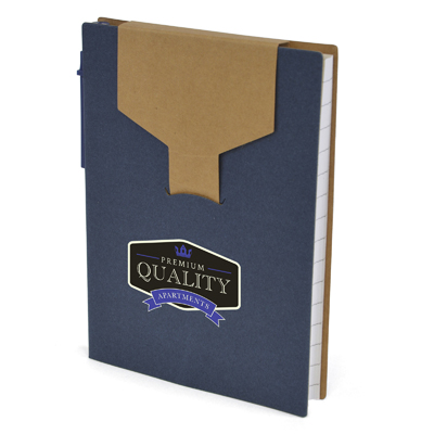 QS0014NBL 'Peckham' NAVY BLUE A6 Sized Card Notepad with Natural Coloured Top Flap 11034