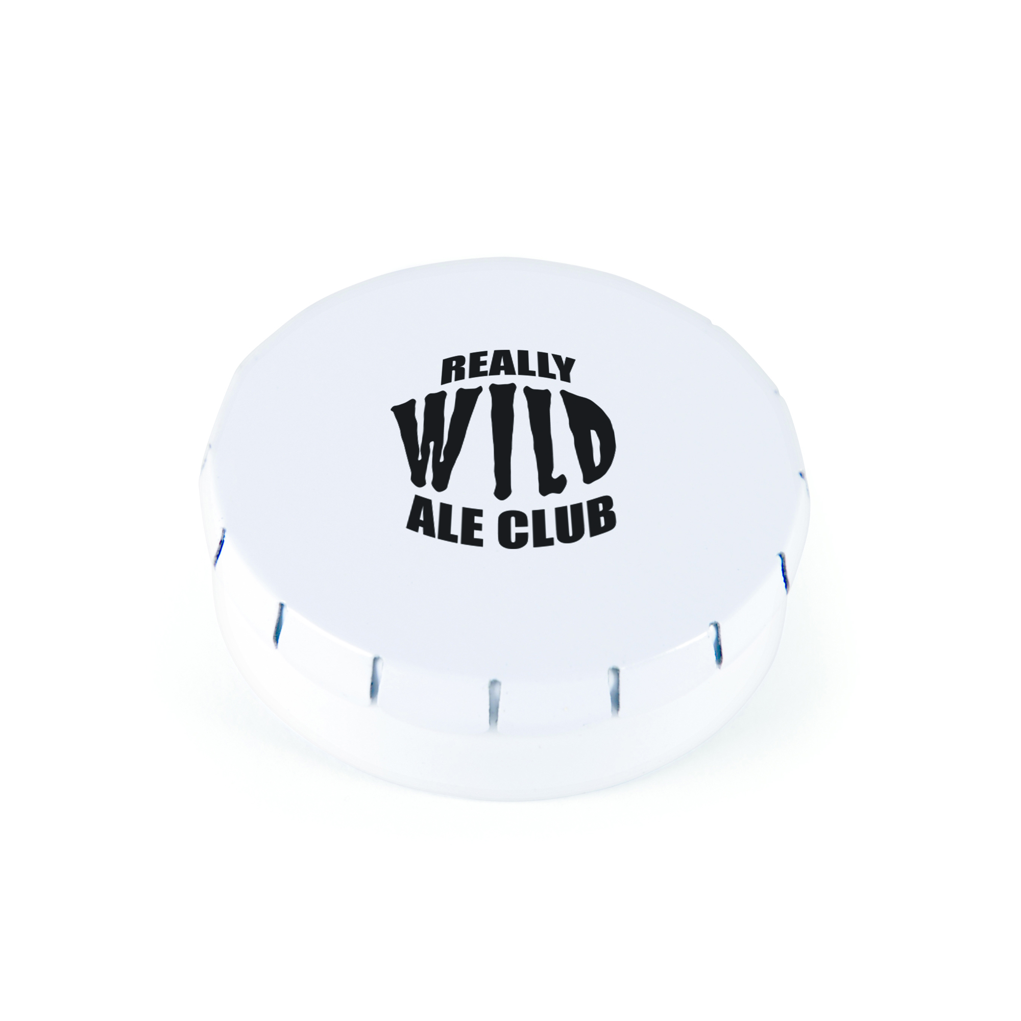 | XU0012WH | 'Click Clack' WHITE metal CIRCULAR mint tin. Approx 40 mints. | 13212 |
