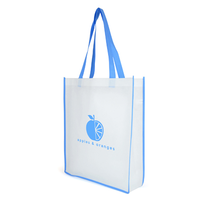 | QB3006CY | WHITE non woven PP shopper with CYAN coloured piping trim, and handles | 598 |