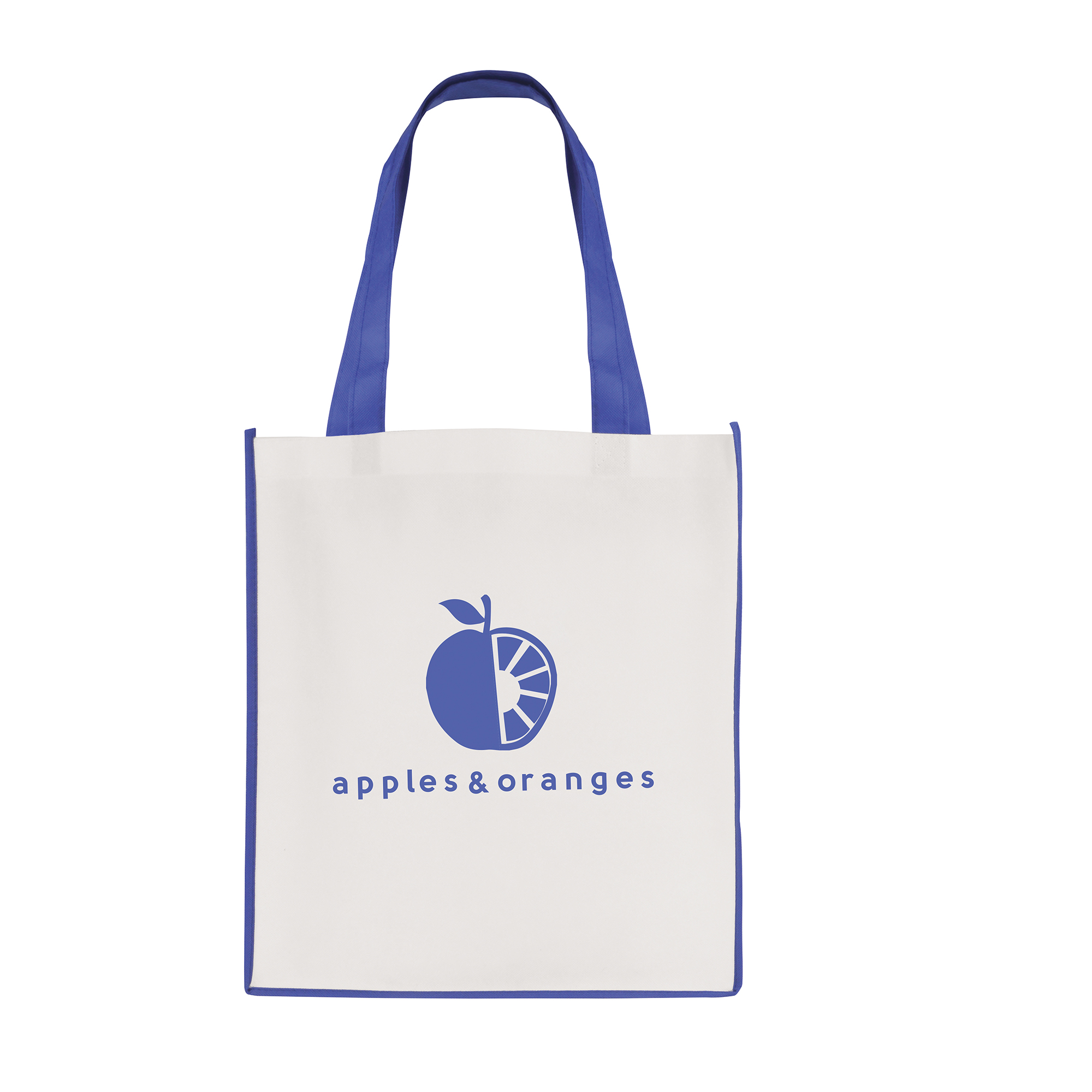 | QB3006BL | WHITE non woven PP shopper with BLUE coloured piping trim, and handles | 5224 |