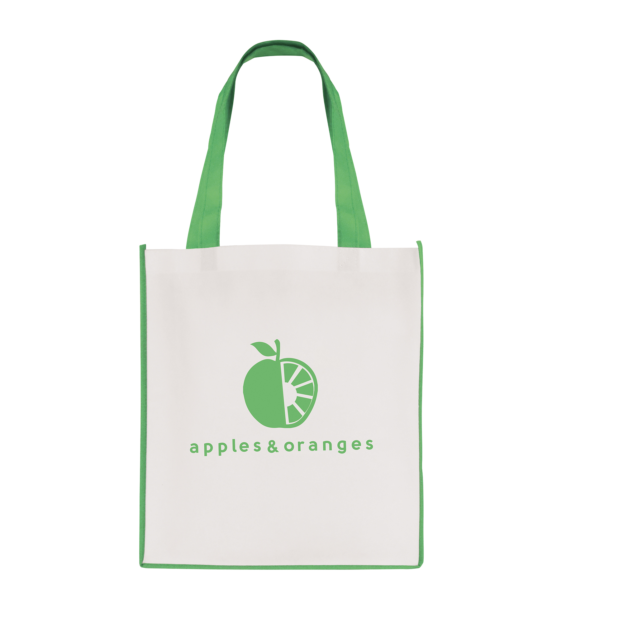 | QB3006GN | WHITE non woven PP shopper with GREEN coloured piping trim, and handles | 1473 |