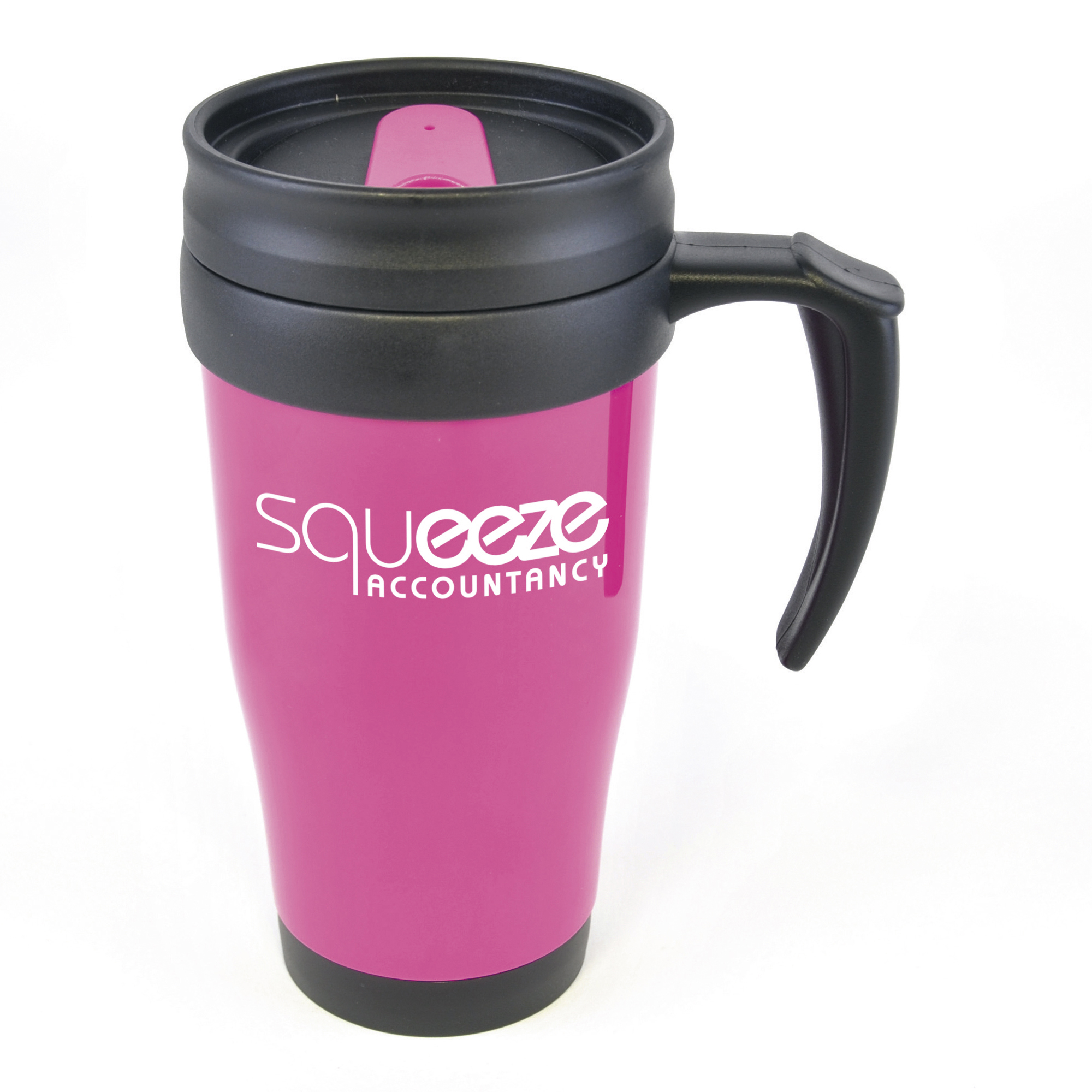 | MG0192PK | 'Polo Plus' 400 ml Plastic Solid Coloured Travel Mug in PINK | 10393 |