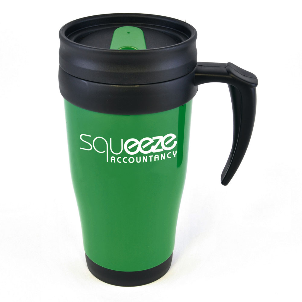 | MG0192DGN | 'Polo Plus' 400 ml Plastic Solid Coloured Travel Mug in DARK GREEN | 1959 |