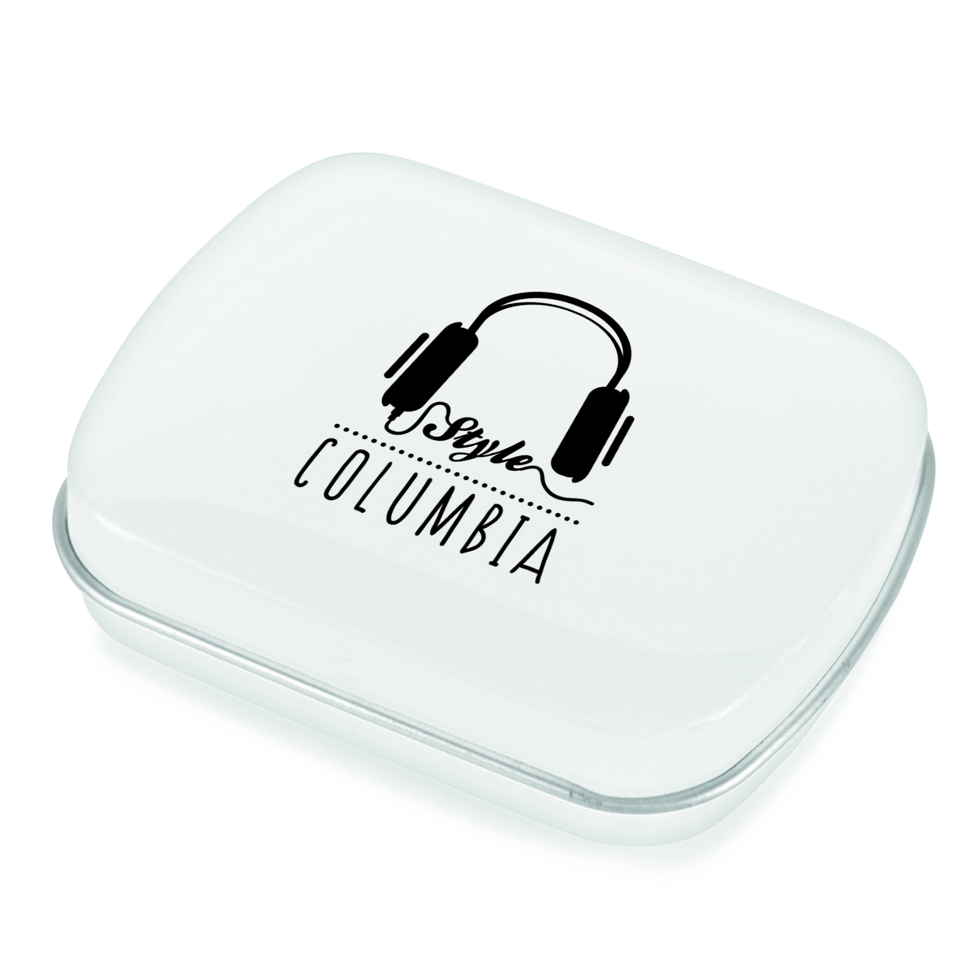 | XU0001WH | 'Rectangular Mint Tin' WHITE metal RECTANGULAR mint tin. Approx 64 mints. | 62014 |