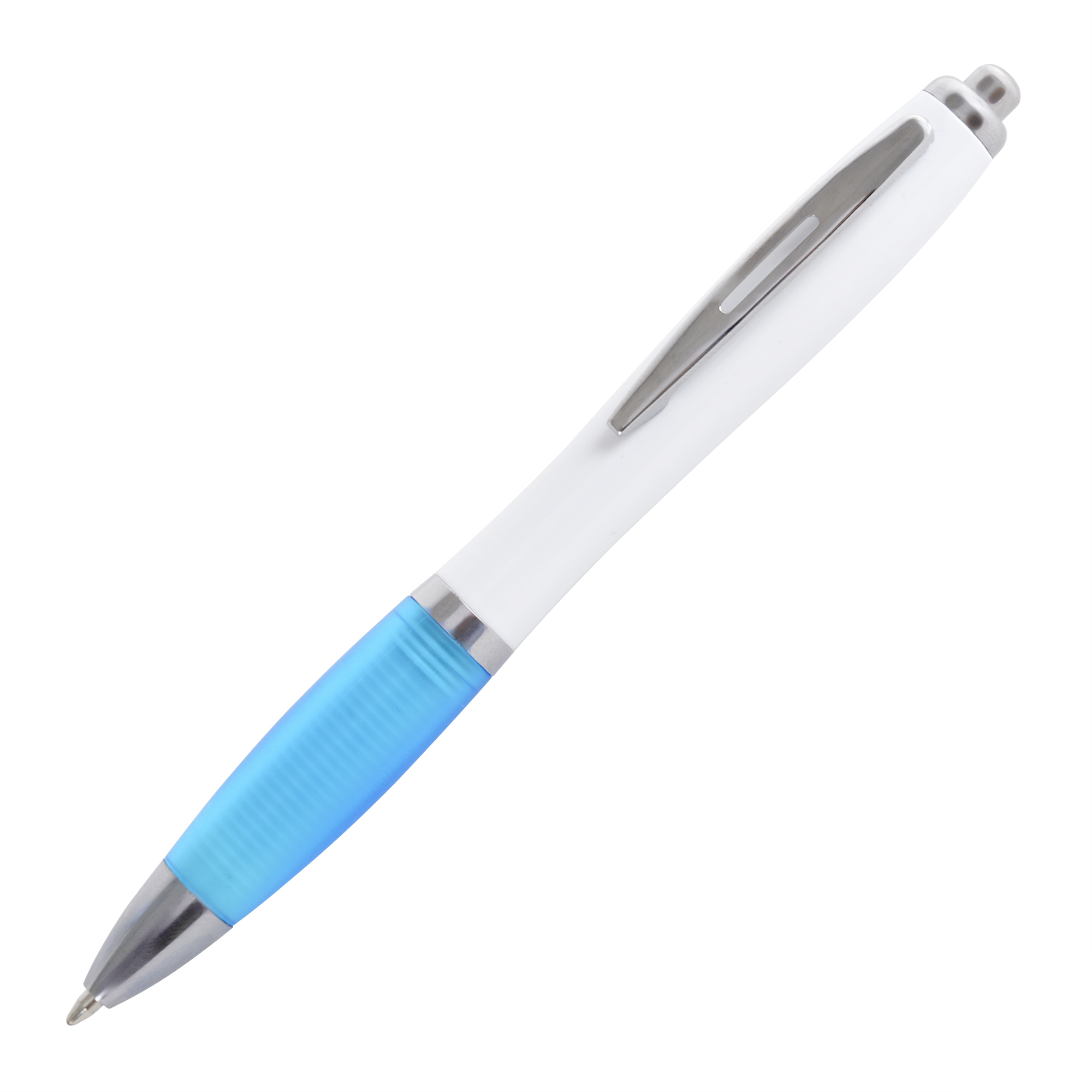 | TPCPN0052LBL | SHANGHAI WHITE ball pen WHITE barrel with LT BLUE grip. Black ink | 22678 |